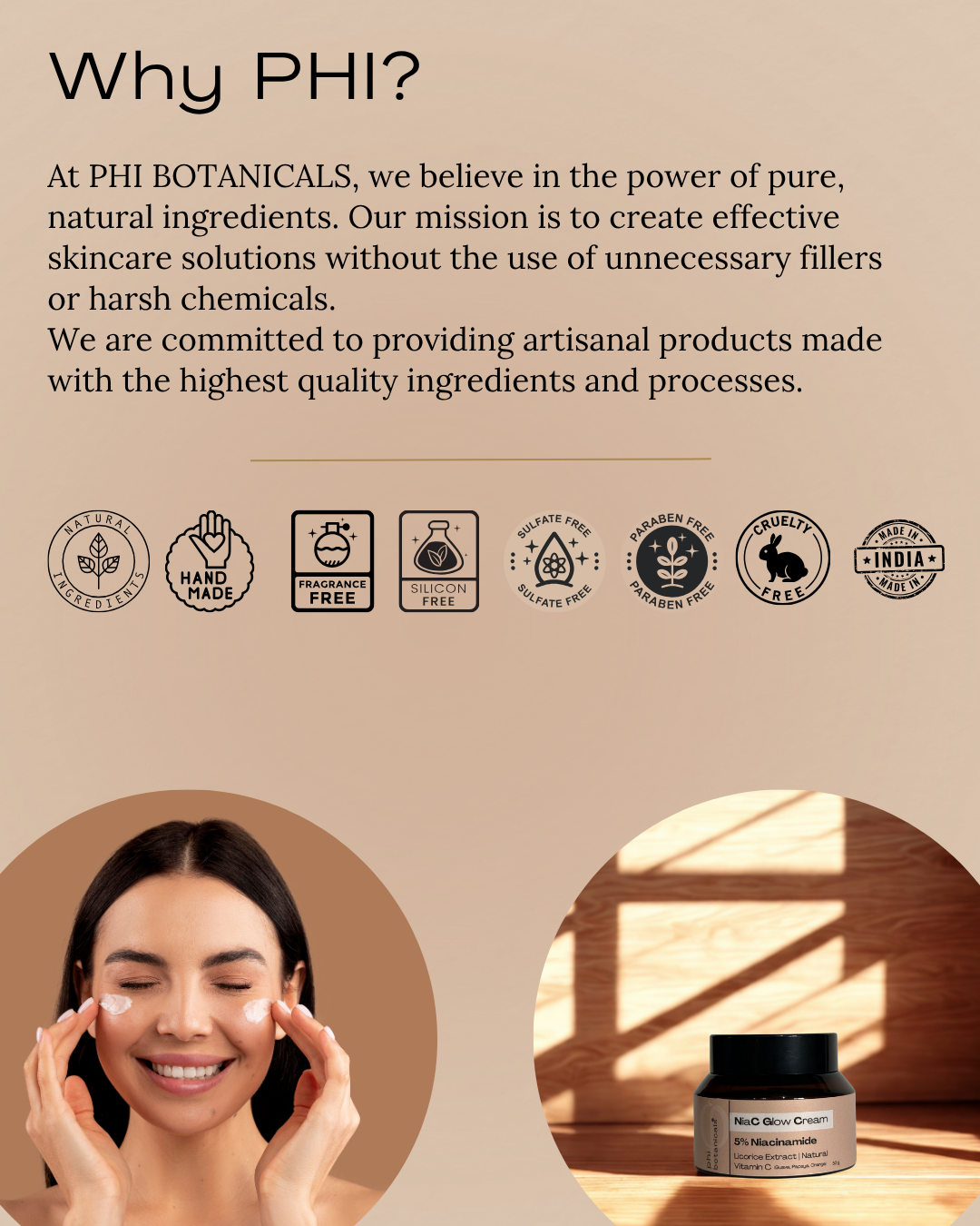 2. Take a pea-sized amount of NiaC Glow Cream. Gently massage in upward circular motions on your face until fully absorbed